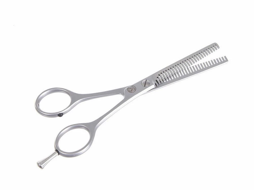 Professionelle doppelseitig gezahnte Effilierschere zum Ausdünnen des Fells. Die Schere ist aus rostfreiem, gehärteten Edelstahl handgeferigt.