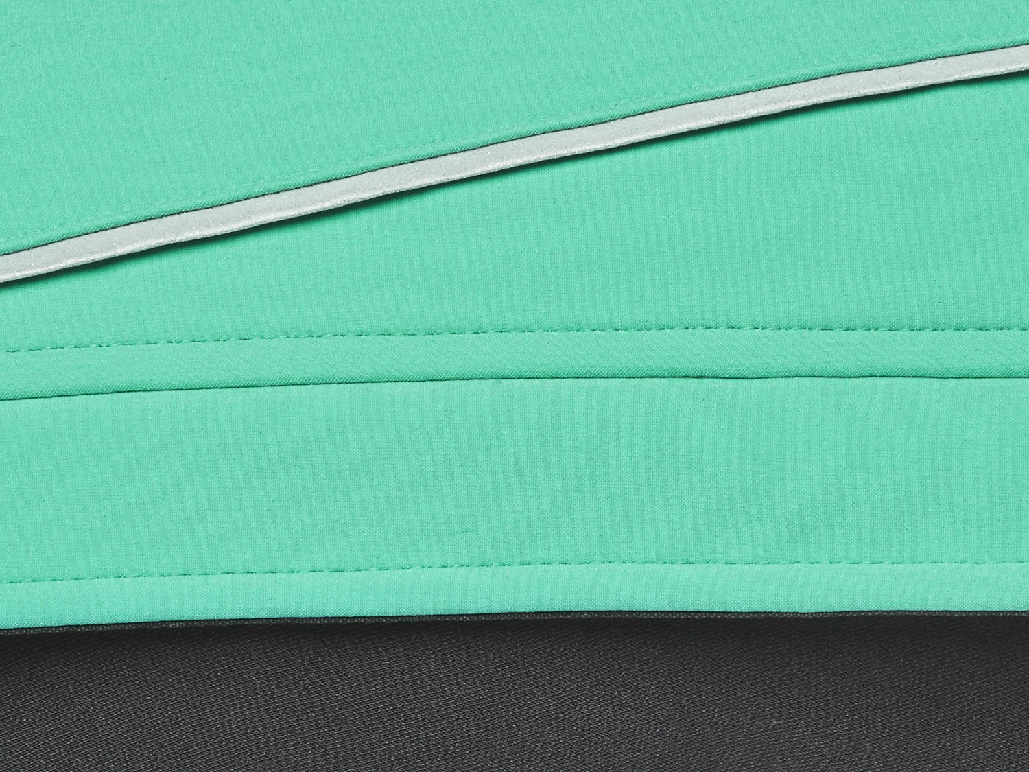 Dank des verdeckten Reißverschlusses lässt sich der Cloud Chaser schnell an- und ausziehen. Für gute Sichtbarkeit sorgen reflektierende Nähte und eine Befestigungsschlaufe für das Geschirrlicht The Beacon.